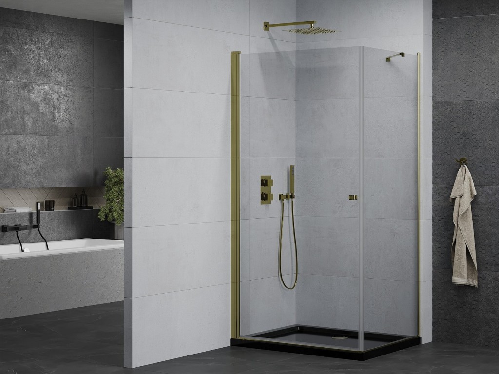 Pretoria sprchové dveře křídlové 80 cm, transparent, zlatý ()Pokud jste ve fázi, kdy stavíte nebo rekonstruujete, a ještě pořádně nevíte, kudy budete do sprchy vcházet, křídlové dveře do sprchového koutu PRETORIA budou perfektní variantou. Jsou univerzální. Můžete je namontovat s otevíráním vpravo nebo vlevo.