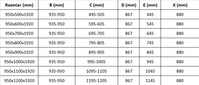 Instalační rozměr křídlových dveří do sprchového koutu je 935-950 mm. Vstup do sprchy budete mít 88 cm. Dveře lze otvírat dovnitř i ven.