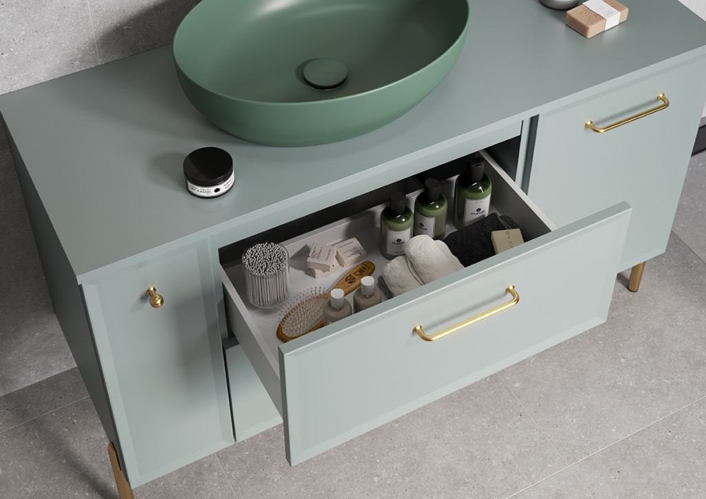 Kolekce Mille je stylová, funkční a především praktická, protože kromě snadného systému spojování prvků nabízí nábytek a dokončovací doplňky v mnoha barevných variantách. Čela nábytku jsou vyrobena z MDF desky a jsou frézovaná, tato jednoduchá forma bez zbytečných zákoutí umožňuje snadné čištění. Nábytek Mille je k dispozici ve třech barvách na výběr: matná bílá, matná černá a fjord /matná zelená/. Rafinované detaily, jako jsou úchyty a nohy ve stříbrné, černé a zlaté barvě. Pracovní desky jsou k dispozici ve třech barvách: matná bílá, matná černá, fjord /matná zelená/ a ve čtyřech velikostech: 60, 80, 100, 120 cm. Kromě řady skříněk přizpůsobených k nábytkovým umyvadlům, tak umyvadlům na desku nabízí kolekce různé typy přídavných skříněk pod desku. V nabídce jsou navíc nábytkové sloupky, které dokonale usnadní organizaci prostoru v každé koupelně. Všechny skříně jsou vybaveny systémem měkkého zavírání.