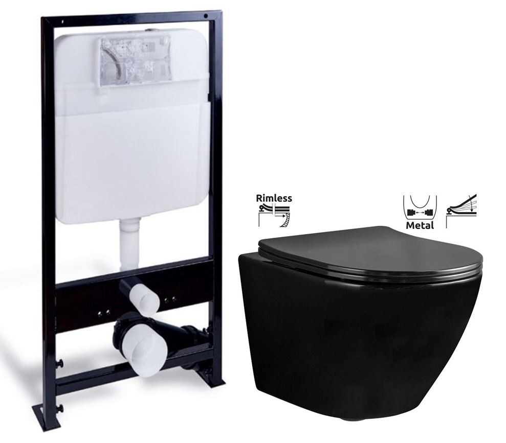 Závěsná WC mísa Carlo Mini Rimless Flat černá (REA-C8936)