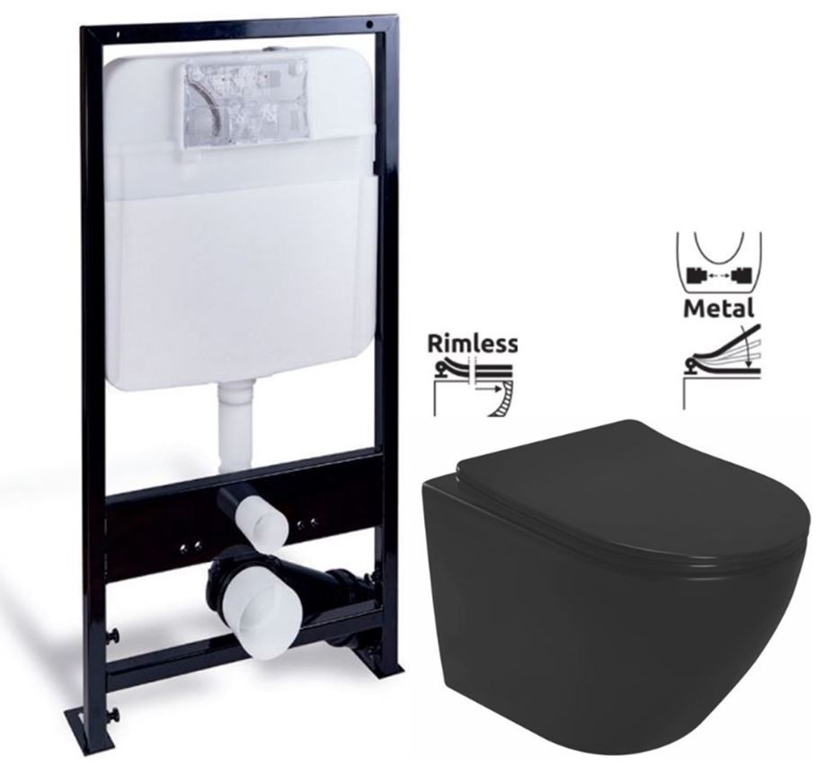 Závěsná WC mísa RIMLESS Carlo Mini Slim černá matná (REA-C8489)