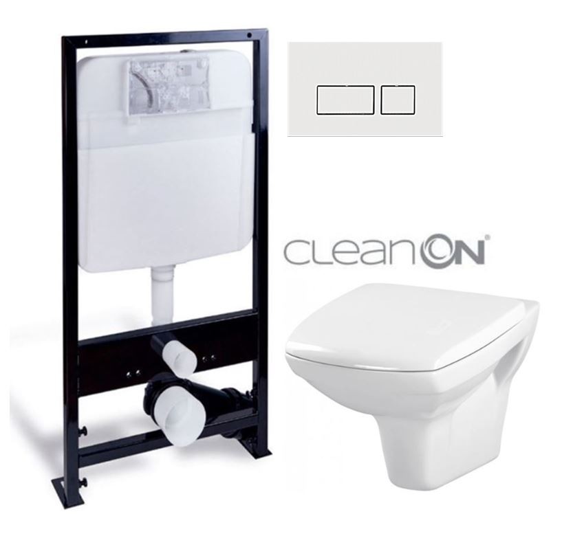 WC závěsná mísa CARINA NEW CleanOn elegantního vzhledu s horizontálním odpadem, funkcí splachování 2,5/5, 3/5l.