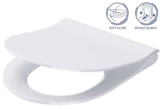 Tenké WC sedátko SLIM s pomalým zavíráním SOFT CLOSE, s jednoduchým sejmutím a upevněním sedátka pomocí jednoho tlačítka EASY OFF ONE BUTTON.