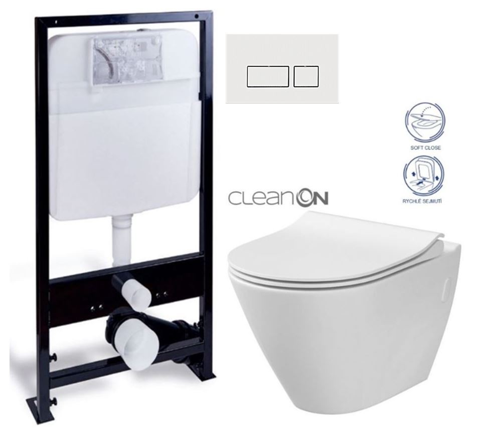 Závěsná mísa CITY OVÁLNÁ NEW CLEAN ON /bez oplachového kruhu/se zadním odtokem a funkcí splachování 2/4, 2,5/5 a 3/5l.