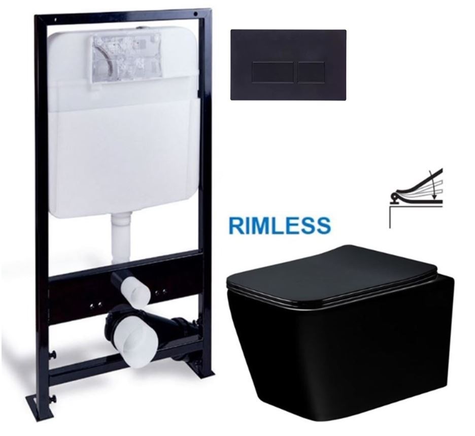 Teo závěsná WC mísa včetně sedátka s slow-slim, duroplast, černá lesk (30854070)