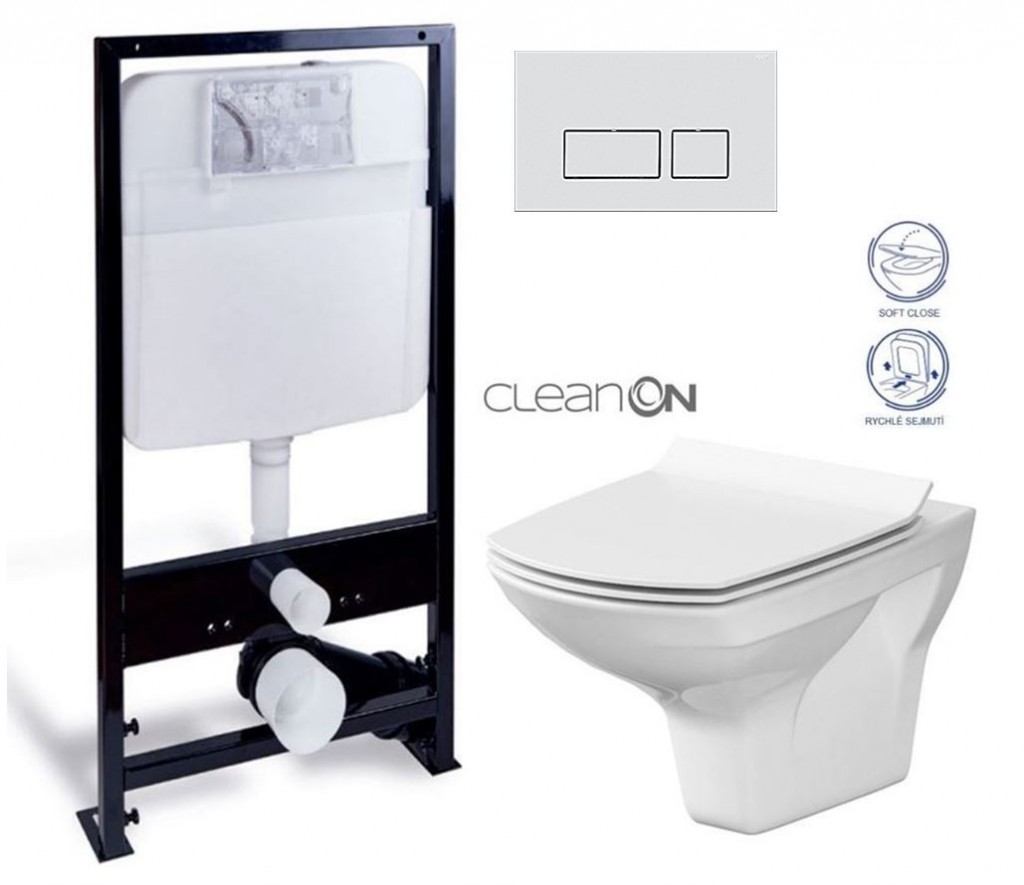 WC závěsná mísa CARINA NEW CleanOn elegantního vzhledu s horizontálním odpadem, funkcí splachování 2,5/5, 3/5l.