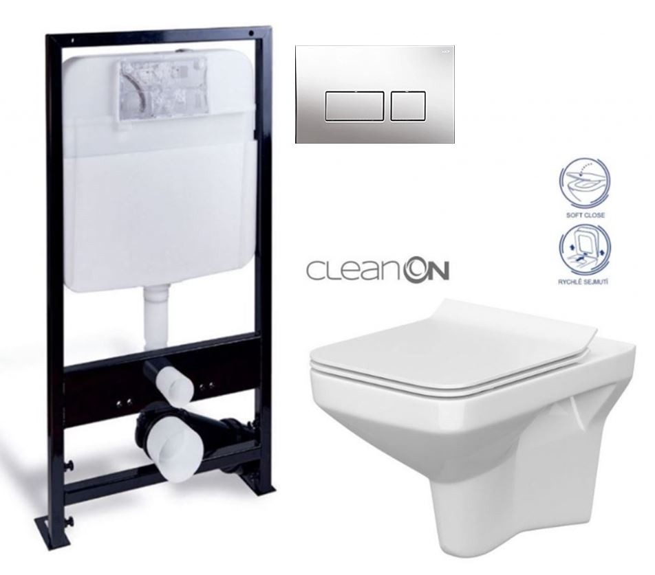 WC závěsná mísa COMO NEW CLEAN ON elegantního vzhledu s horizontálním odpadem, funkce splachování 2/4, 2,5/5, 3/5l.