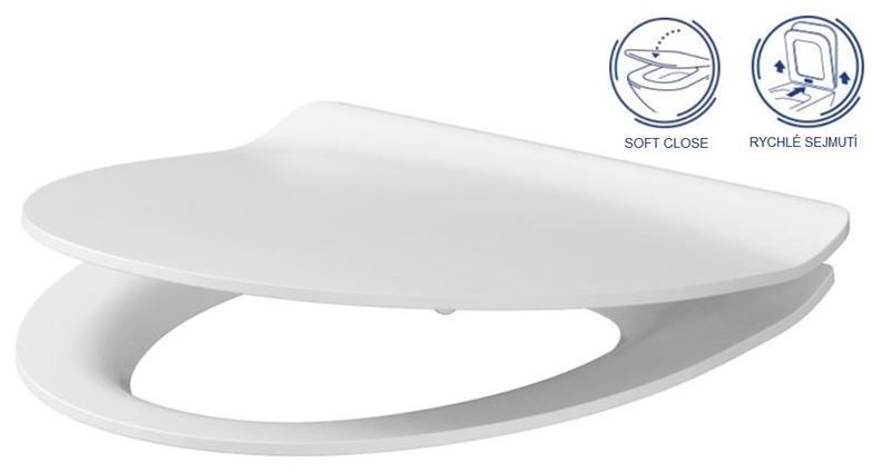 WC sedátko tenký SLIM, s pomalým zavíráním SOFT CLOSE, s jednoduchým sejmutím a upevněním sedátka pomocí jednoho tlačítka EASY OFF ONE BUTTON.