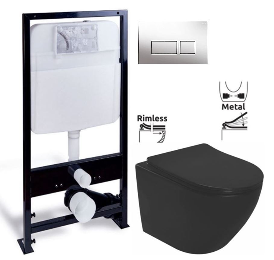 Závěsná WC mísa RIMLESS Carlo Mini Slim černá matná (REA-C8489)