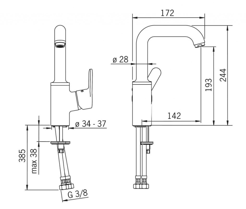 - připojení na flexibilní tlakové hadice G 3/8