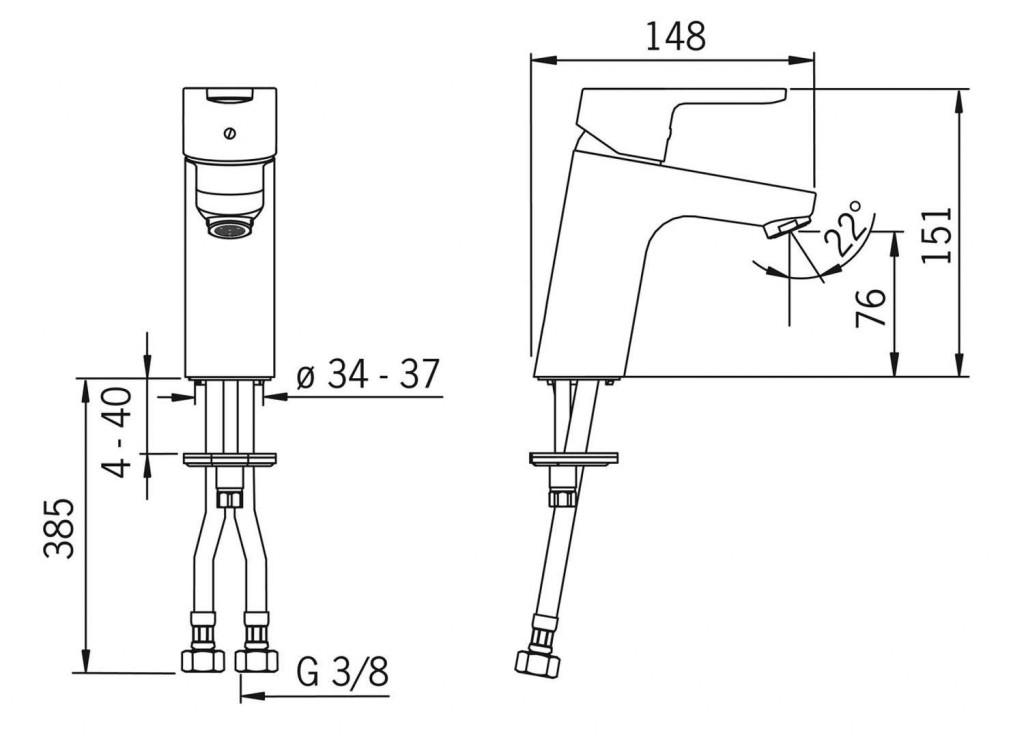 - pevné výtokové rameno, bez otvoru pro táhlo