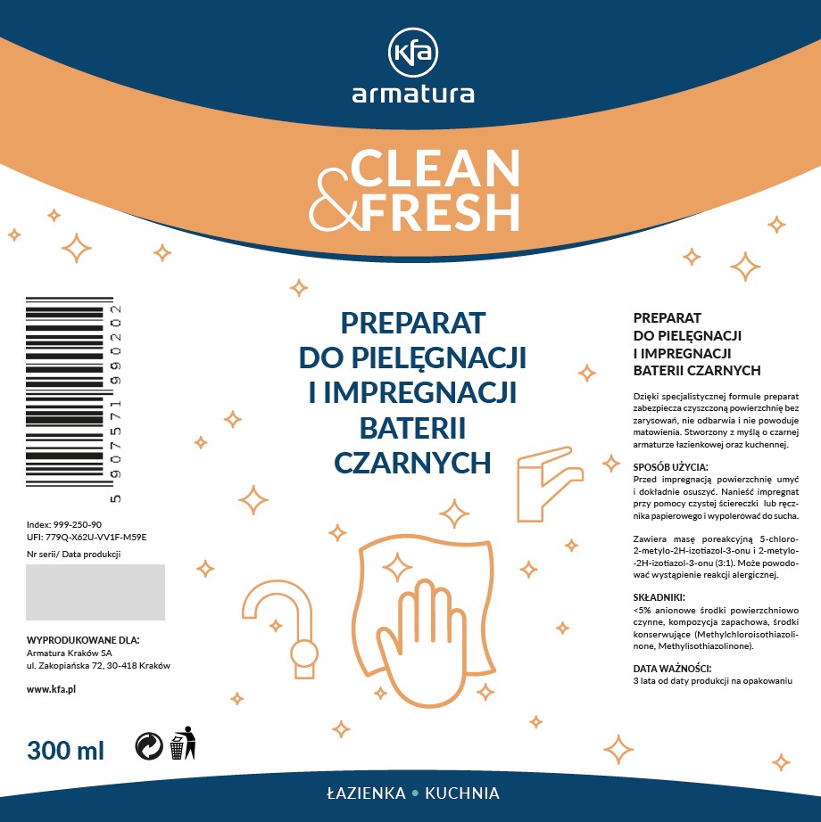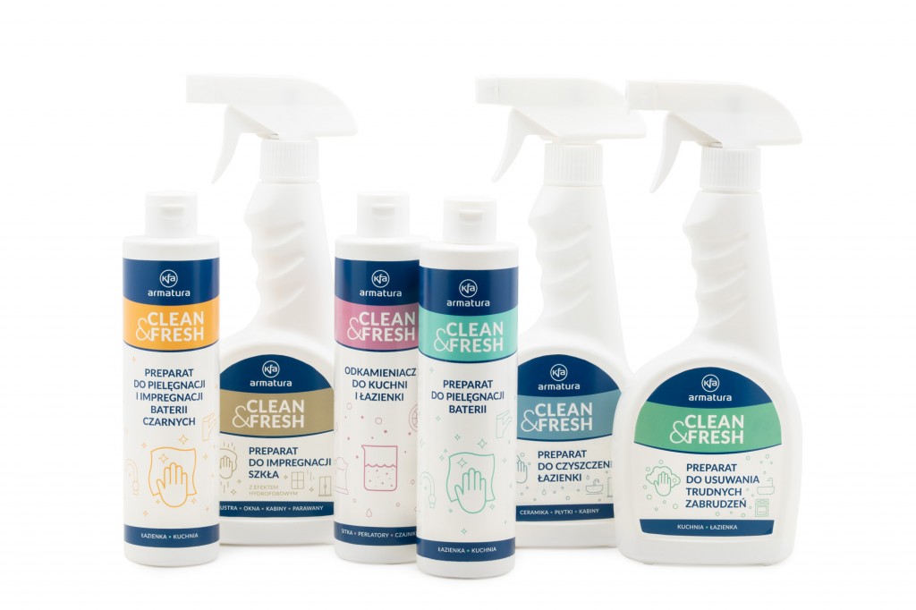 CLEAN & FRESH se skládá z vysoce kvalitních produktů s účinností ověřenou přísnými testy. Pohodlným řešením v praxi je naše kosmetika pro péči o koupelnové a kuchyňské baterie, včetně speciálních přípravků na černé baterie. Pomáháme uživatelům pečovat o produkty, které si vybrali a nainstalovali do svých kuchyní a koupelen tak, aby si co nejdéle zachovaly svůj původní vzhled.