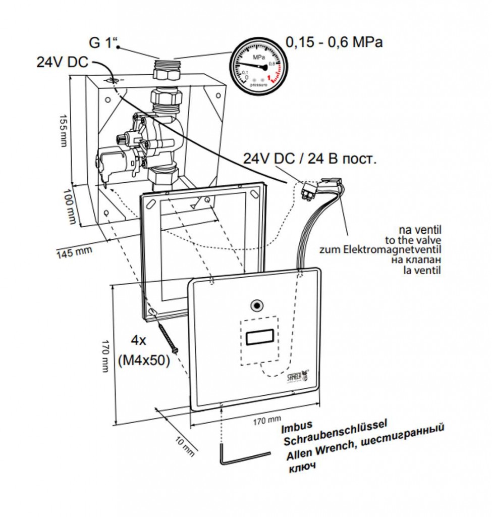 - nerezová montážní krabice se šroubením a elektromagnetickým ventilem