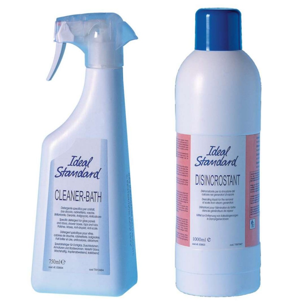 - speciální čisticí prostředek na vodovodní baterie, výplně sprchových koutů a skleněné plochy