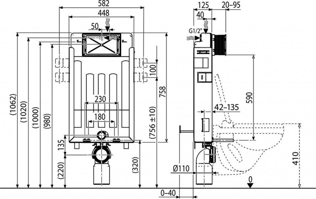 - rozměry (š/h/v): 592 x 145 - 220 x 1062 mm