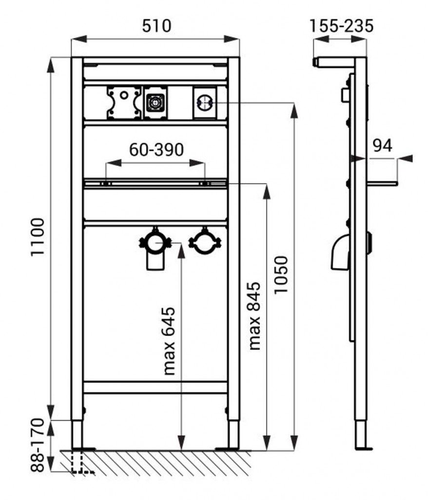 - rám určený do sádrokartonových konstrukcí, pro ukotvení na zem a do zadní zdi
