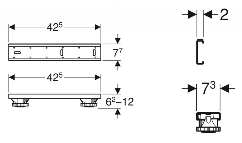 - pro umístění, výškové nastavení a upevnění sprchových vaniček