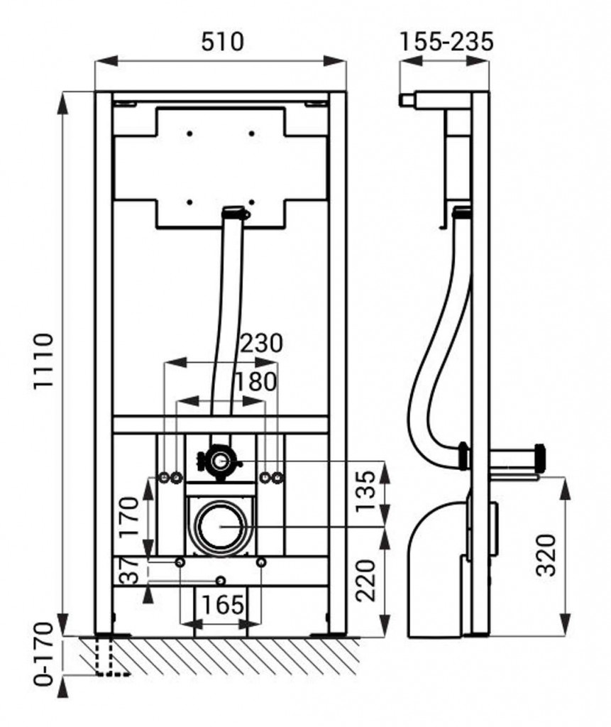 - je určen pro závěsné WC a splachovač, který je umístěnv prostoru nad WC