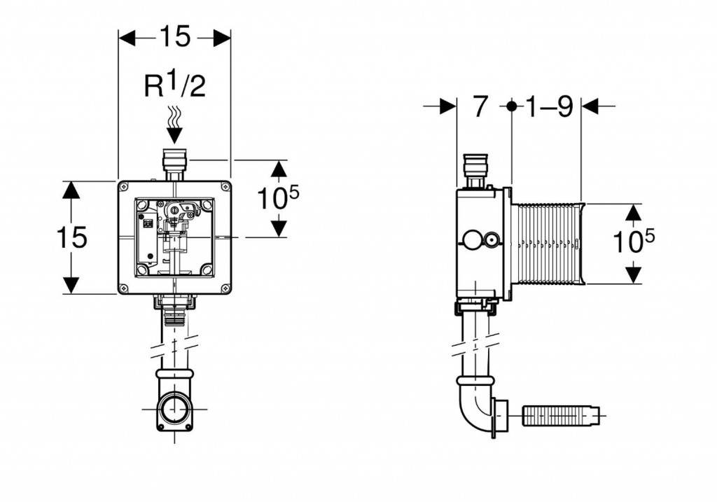 Souprava pro hrubou montáž pro pisoáry, pro ovládání splachování pisoárů