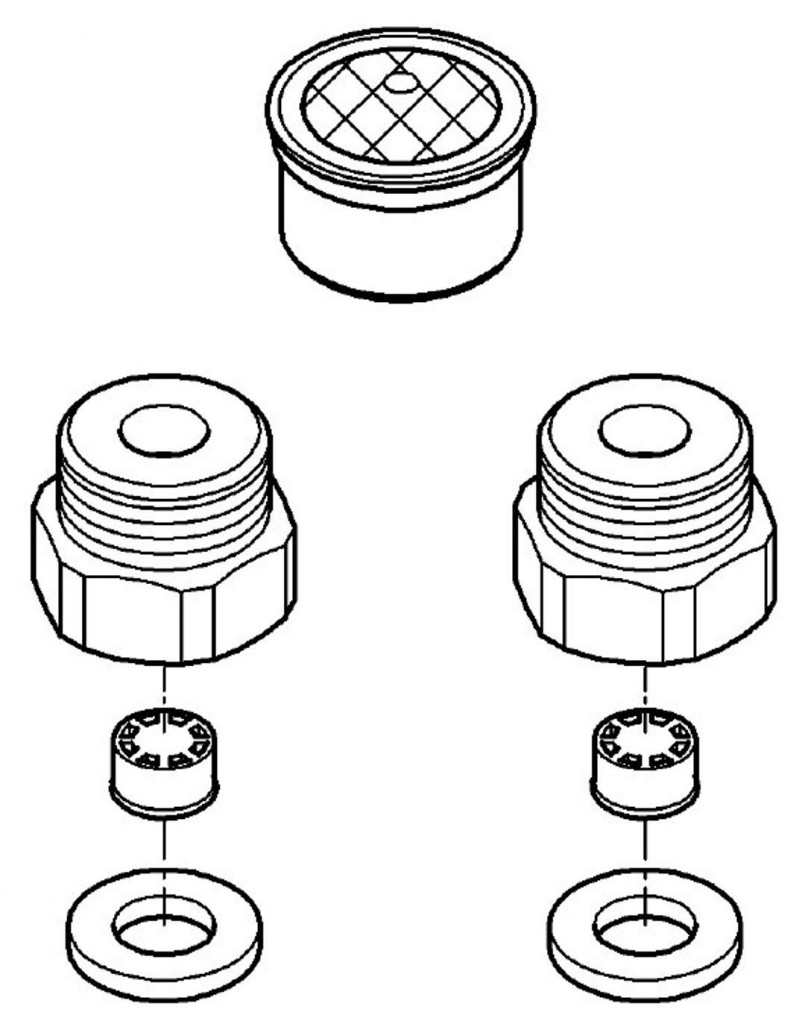 - obsahuje dva napájecí adaptéry vč. regulátoru průtoku a jednoho perlátoru