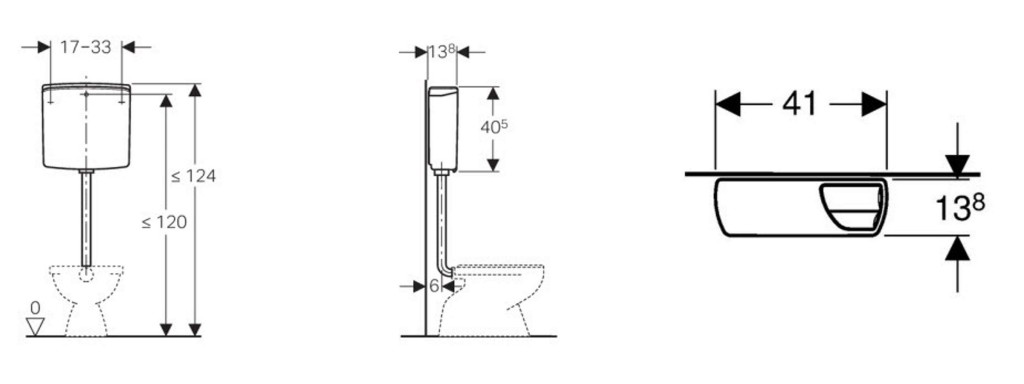 - malé splachovací množství, rozsah nastavení 3–4 l