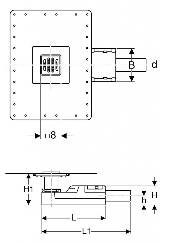 - rozměry: B = 130 mm, H = 90 mm, H1 = 90-220 mm, h 42 mm