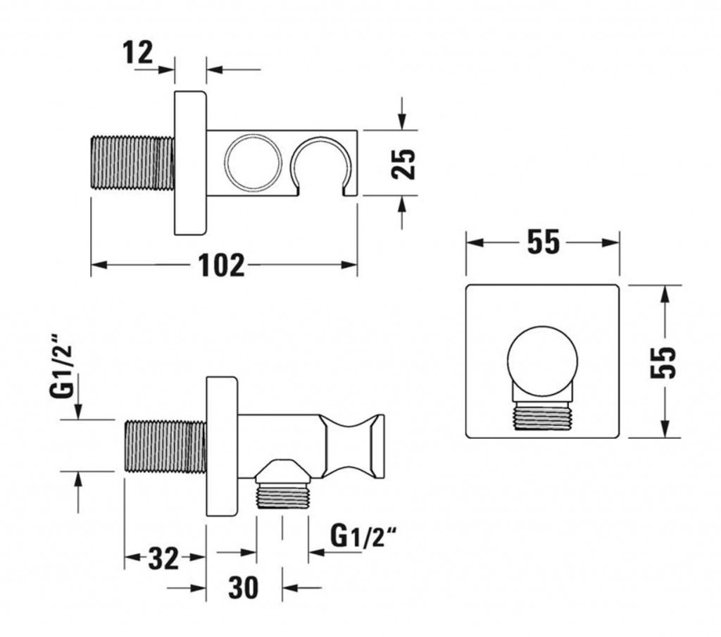 Sprchové koleno s držákem