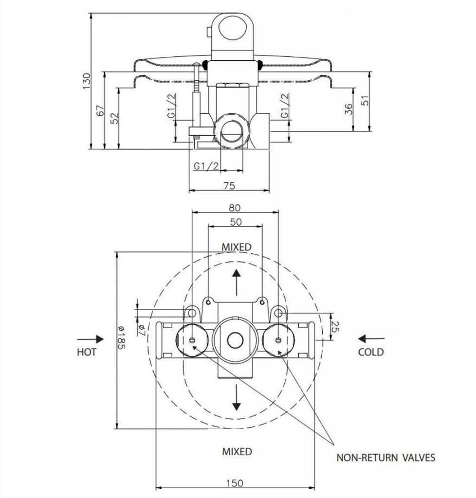 - před směšovací baterií je nutné nainstalovat zpětné ventily
