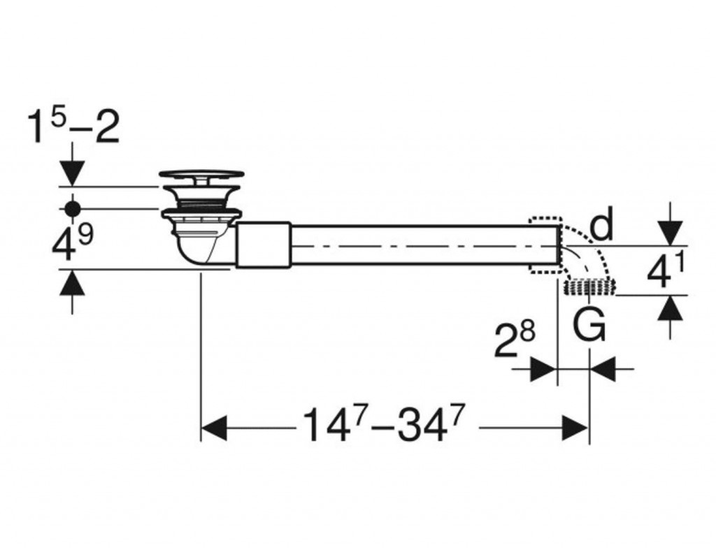 Odpadní ventil Geberit, prostorově úsporný, úzké provedení, s volným odtokem a krytem ventilu