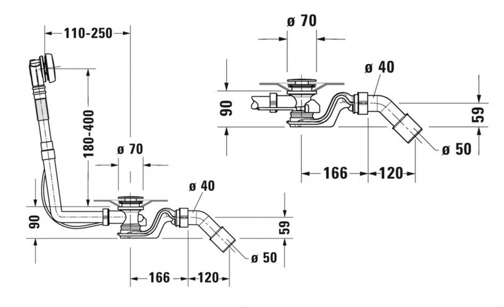 - pro vany s odtokem na boku