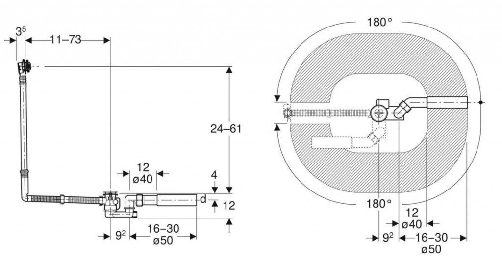 - oboustranná těsnění pro odtok a přepad