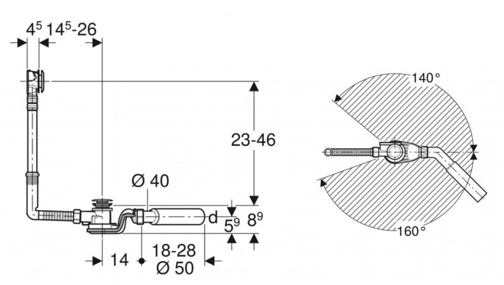 - připojovací koleno 45°, průměr 40 / 50 mm