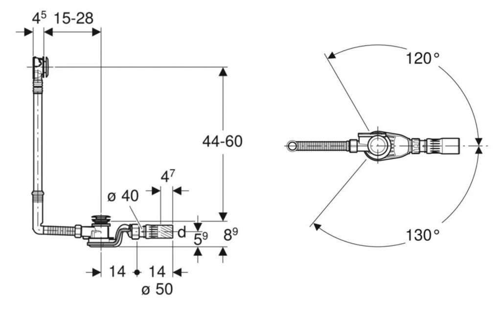 - pro vany a sprchové vaničky s otvorem ventilu, průměr 52 mm