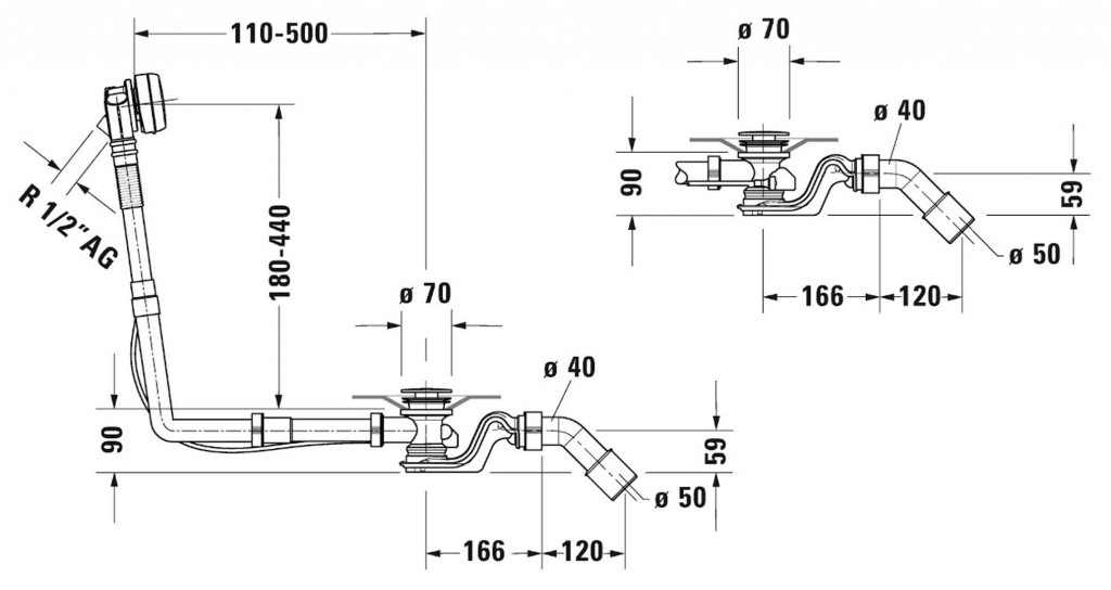 - pro vany s odtokem uprostřed