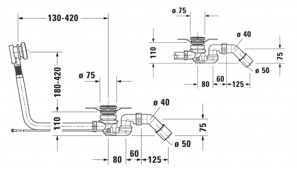 - pro vany s odtokem uprostřed