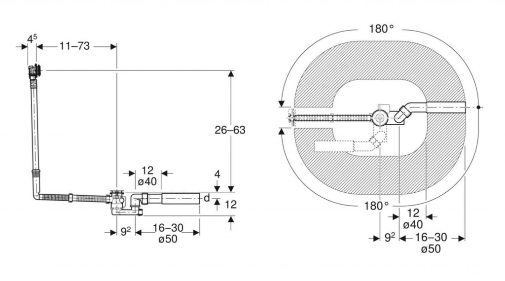 - výška vodního uzávěru 50 mm