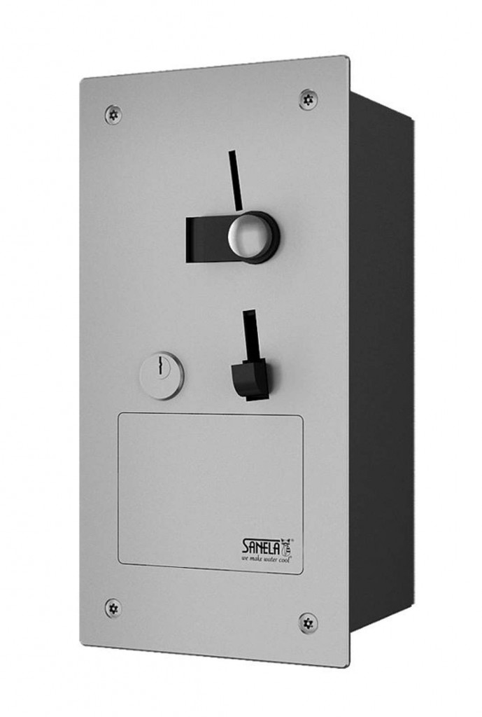 - balení obsahuje: nerezový mincovní automat s elektronikou, mincovníkem a boxem na mince, sadu klíčů (2 ks), montážní rám