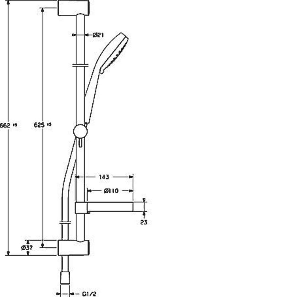 - nástěnná tyč, délka: 600 mm, Ø 21 mm (aretovatelné výškové nastavení)