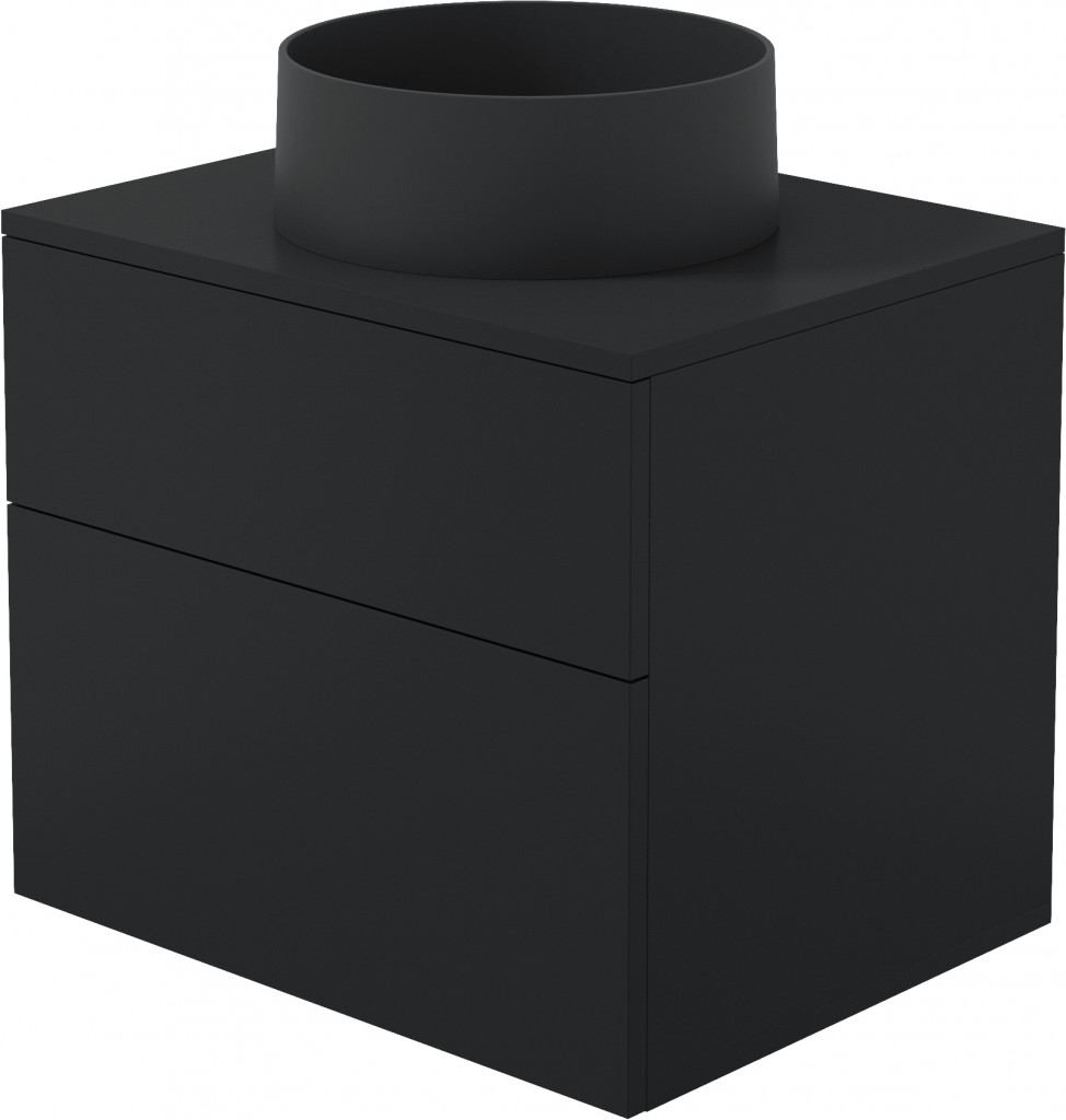 Tato koupelnová sada kombinuje kulaté žulové umyvadlo Silia v tmavě černé barvě s matně černou skříňkou Prizma a vytváří tak ucelenou a moderní kompozici. Tato barevná kombinace vytváří elegantní, minimalistický prostor, který se perfektně hodí do větších i menších koupelen. Umyvadlo zaujme svým hladkým povrchem bez přepadu, díky čemuž se snadno udržuje v čistotě. Matně černá skříňka harmonicky doplňuje žulové umyvadlo a zdůrazňuje moderní charakter sady. Dvě prostorné zásuvky s plným výsuvem a funkcí tichého dovírání zajišťují pohodlné každodenní používání, zatímco systém otevírání push-to-open zdůrazňuje inovativní styl nábytku. Pracovní deska s otvorem pro sifon je dokonale sladěna s umyvadlem a vytváří tak bezešvý a elegantní celek. Sada je dodávána kompletně smontovaná a připravená k instalaci. Vyrobeno v Polsku s maximálním důrazem na detail, je vynikající volbou pro ty, kteří hledají kombinaci kvality, funkčnosti a moderní elegance.