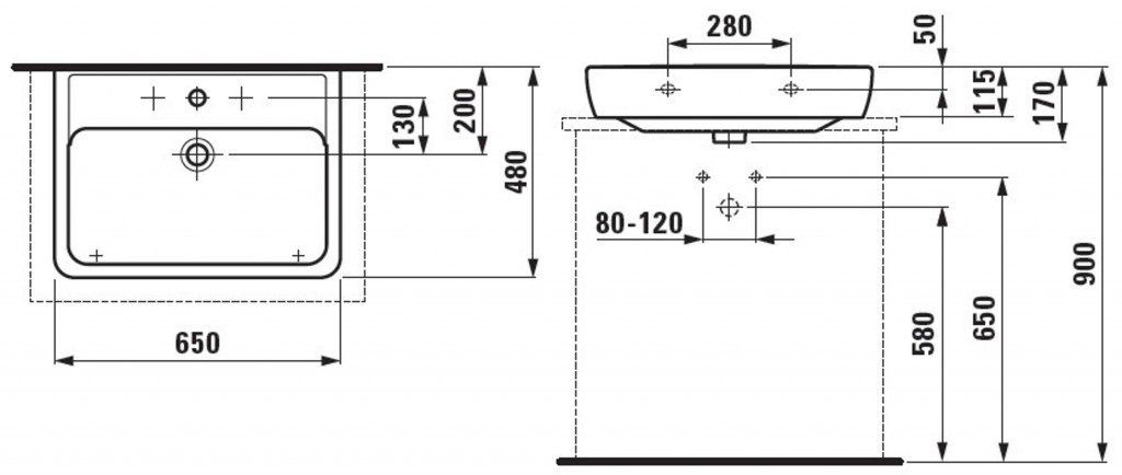 Umyvadlo s jedním otvorem pro baterii, s přepadem.