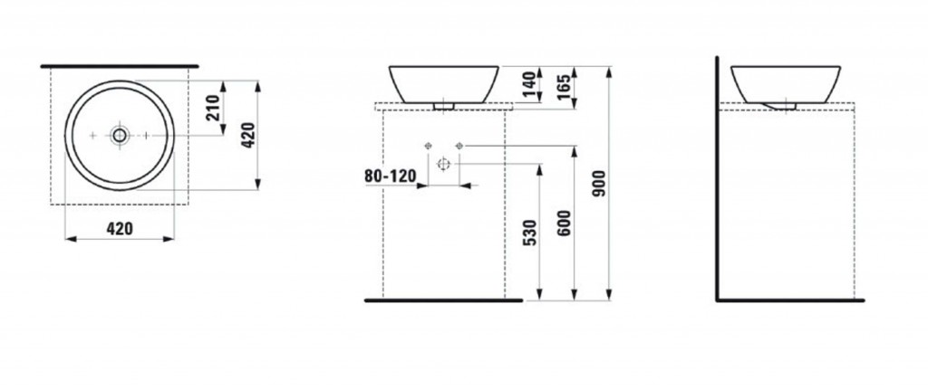 Umyvadlová mísa bez otvoru pro baterii, s přepadem.