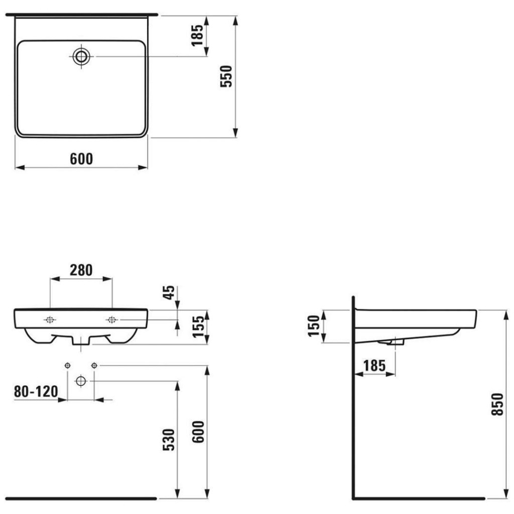 Umyvadlo bez otvoru pro baterii, bez přepadu