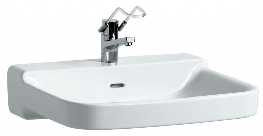 Umyvadlo s integrovaným madlem, vhodné pro osoby s tělesným postižením.