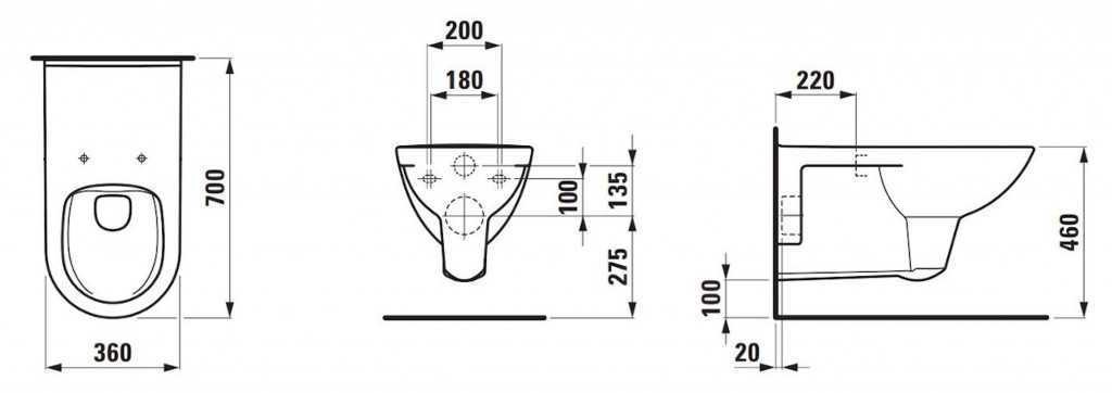 - instalace: zavěšením na zeď, pro výšku460 mm