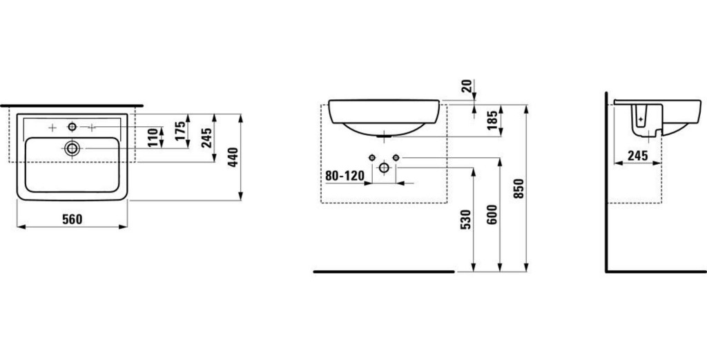 Polozápustné umyvadlo s jedním otvorem pro baterii, s přepadem