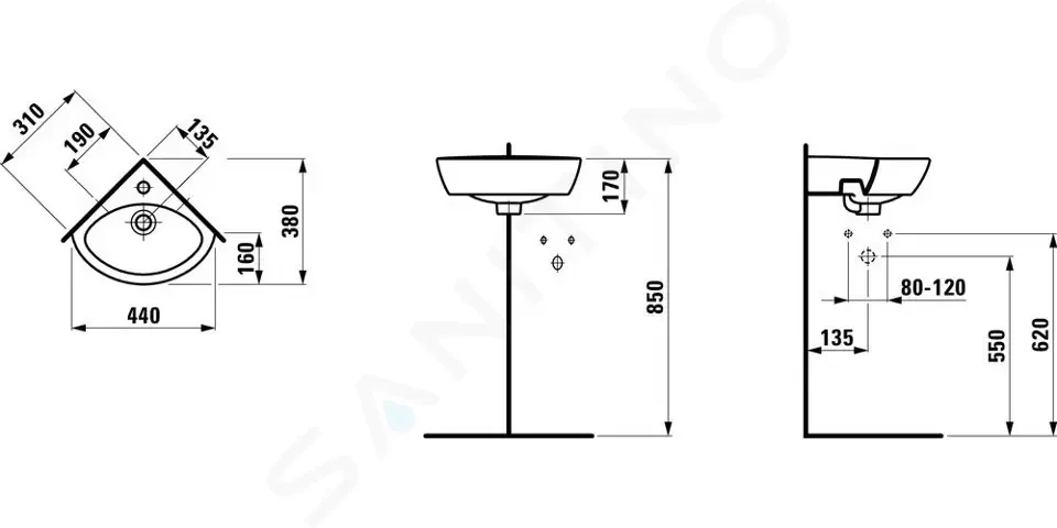 Rohové umývátko s jedním otvorem pro baterii, s přepadem