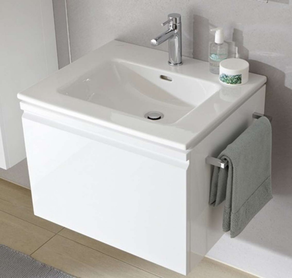 Umyvadlo montovatelné na zeď, se skříňkou pod umyvadlo, se zásuvkou
