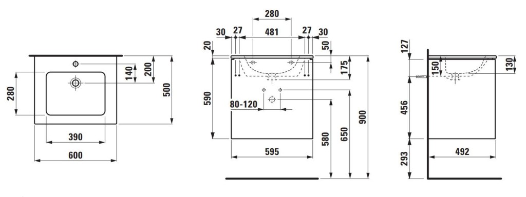 - rozměr umyvadla: 175 x 600 x 500 mm
