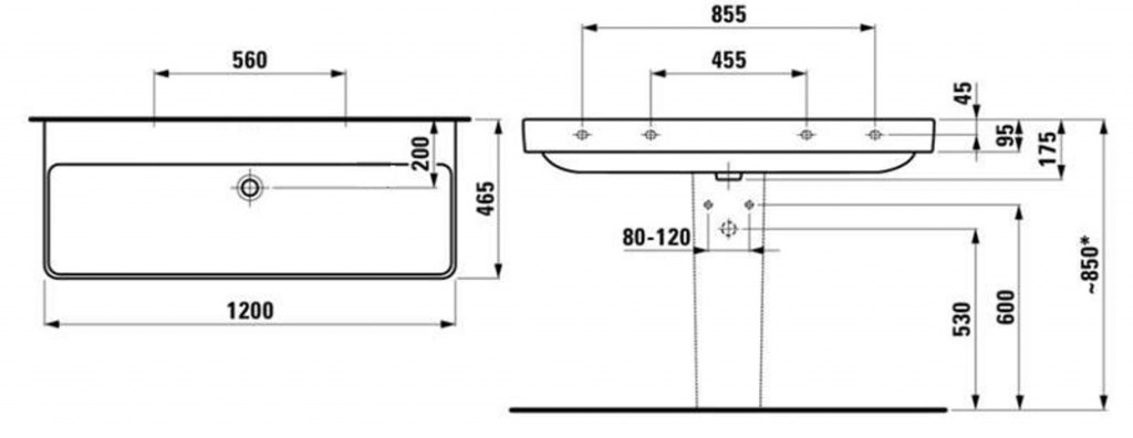 Umyvadlo bez otvoru pro baterii, s přepadem