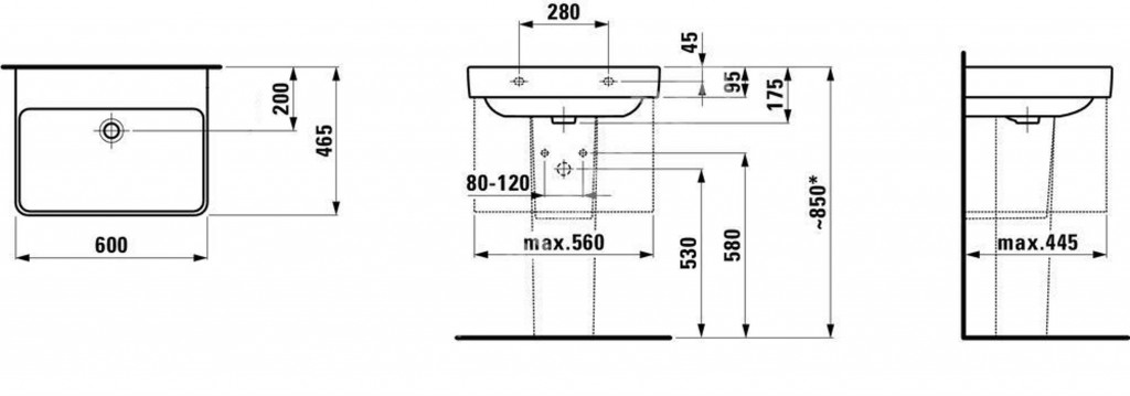Umyvadlo bez otvoru pro baterii, bez přepadu
